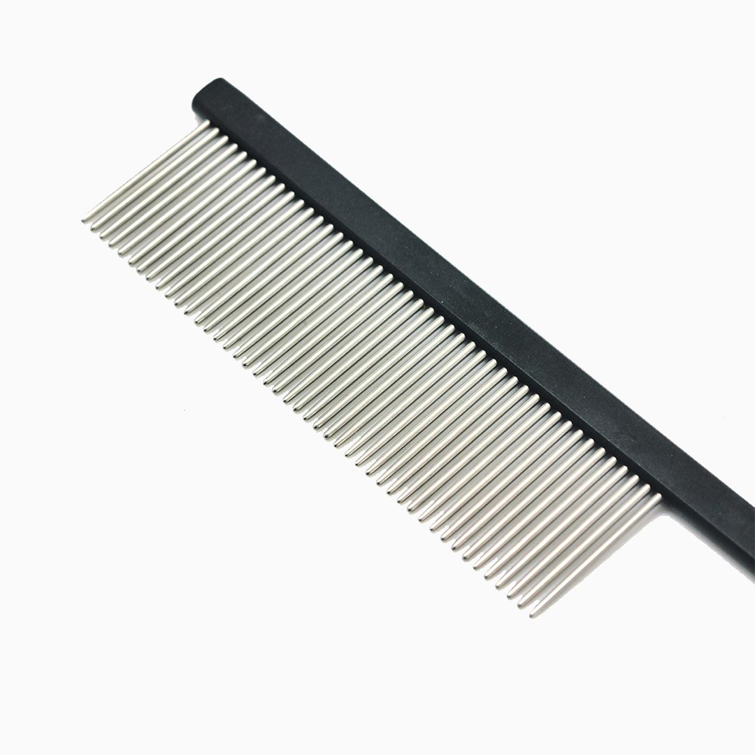 Pettine con corpo in alluminio e denti in acciaio inossidabile, estremamente leggero e resistente, perfetto per realizzare sezioni precise e pettinare nel dettaglio. Unico colore disponibile il nero.